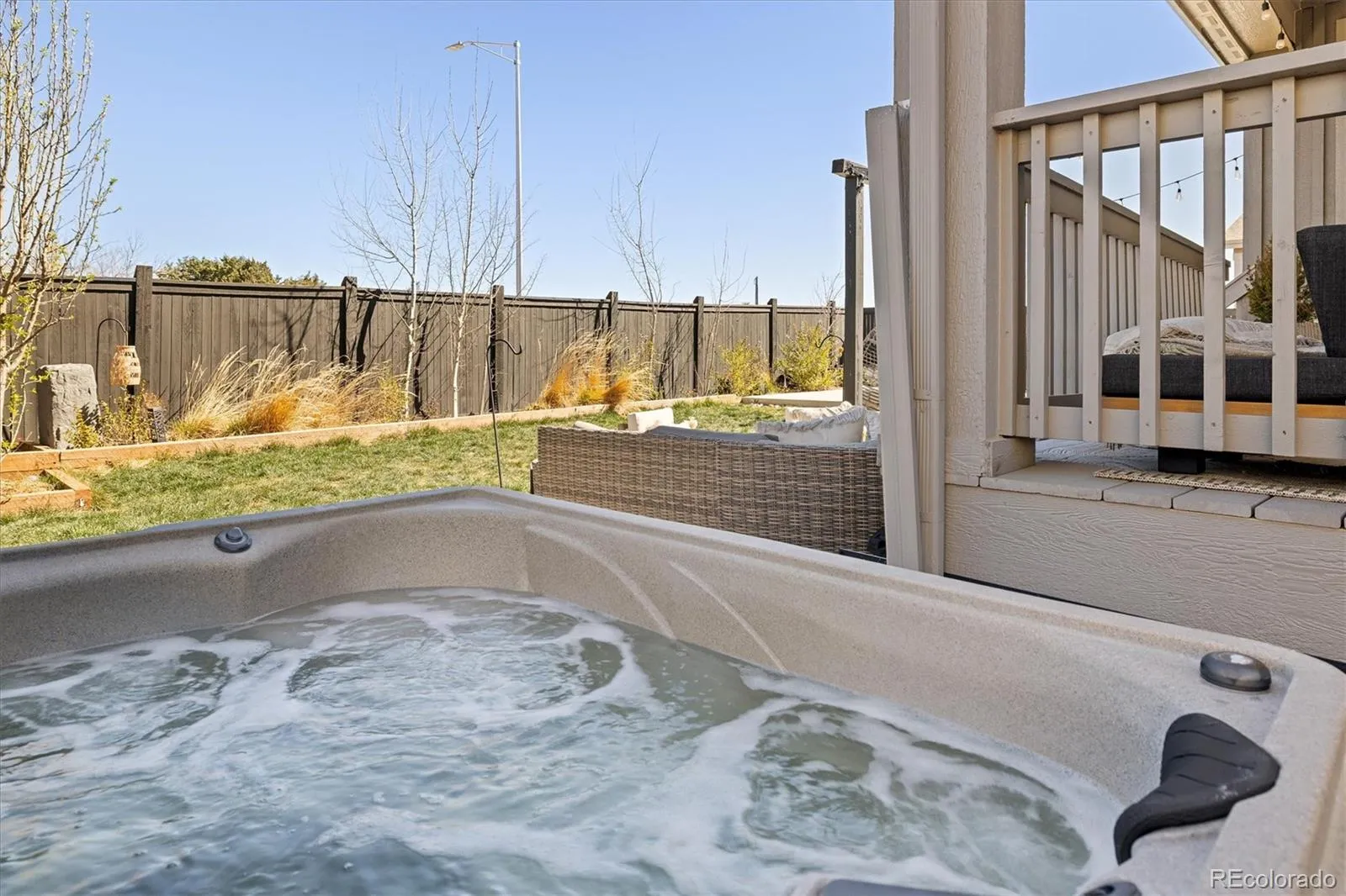 Lastly, don’t miss the backyard oasis, perfect for summer entertaining: a covered deck, hot tub, multiple hangout areas, beautiful garden beds just about to blossom, summer lights & basketball/sports court. The tandem 3 car garage & unfinished basement provide plenty of extra space for storage or additional living space! Plus, the community park, playground & basketball court are just a short walk away. Shopping, dining, parks/trails, commuting access & DIA are right at your fingertips. Don’t this gem!