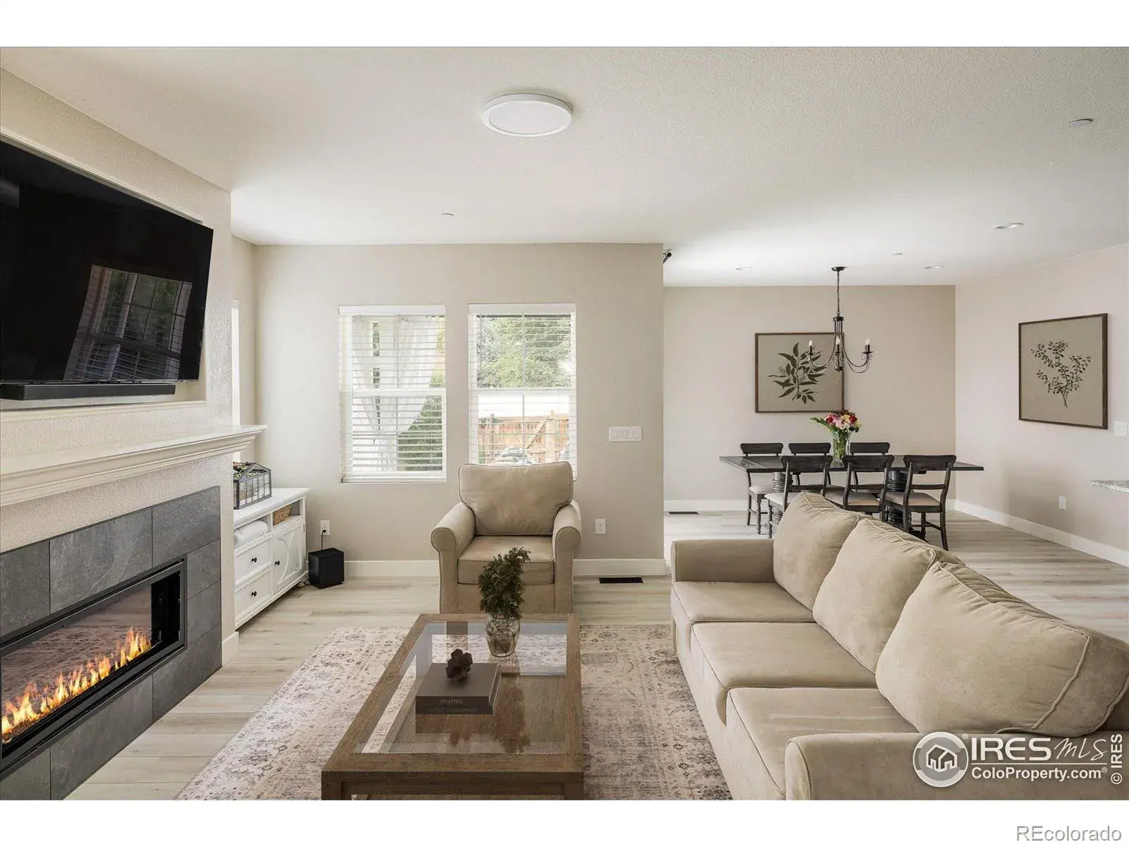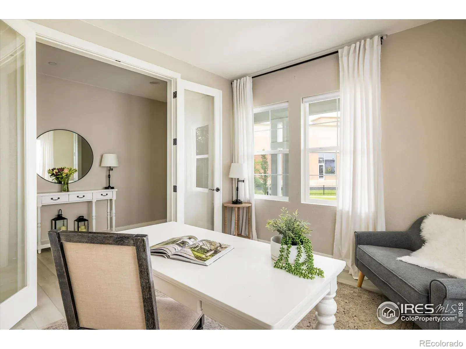 Bathed in natural light and set directly across from a neighborhood park, this south-facing Crown Point residence blends refined design with a layout ideal for multigenerational living. Large windows and elevated finishes define the main level, where an open living area centers on a sleek fireplace and connects seamlessly to a chef-inspired kitchen with a center island and extensive cabinetry. The dining area transitions to a covered patio and fenced backyard, creating an additional private gathering space suited for year-round use. The main level offers a bedroom paired with a 3/4 bath, a highly desirable feature for guests, multigenerational living, or those seeking main-floor convenience without stairs. A private office with French doors further enhances functionality for today’s work-from-home lifestyle. The upper level balances privacy and flexibility with a loft designed as a secondary lounge or study, a serene primary suite with a walk-in closet and double-vanity bath, and additional bedrooms positioned for separation between living areas. The finished basement enhances versatility with a theatre room, flex space, and a bedroom/bath configuration ideal for guests, extended-stay visitors, or multigenerational arrangements requiring distinct zones. A covered front porch and an attached two-car garage with alley access add convenience, while HOA-provided landscaping and snow removal contribute to an effortless, low-maintenance lifestyle. Located close to daily conveniences-Starbucks, grocery, FedEx, The Little Gym-and offering efficient access to Hwy 36 for travel toward Boulder or Denver. Sellers request 24 hours’ notice for showings.