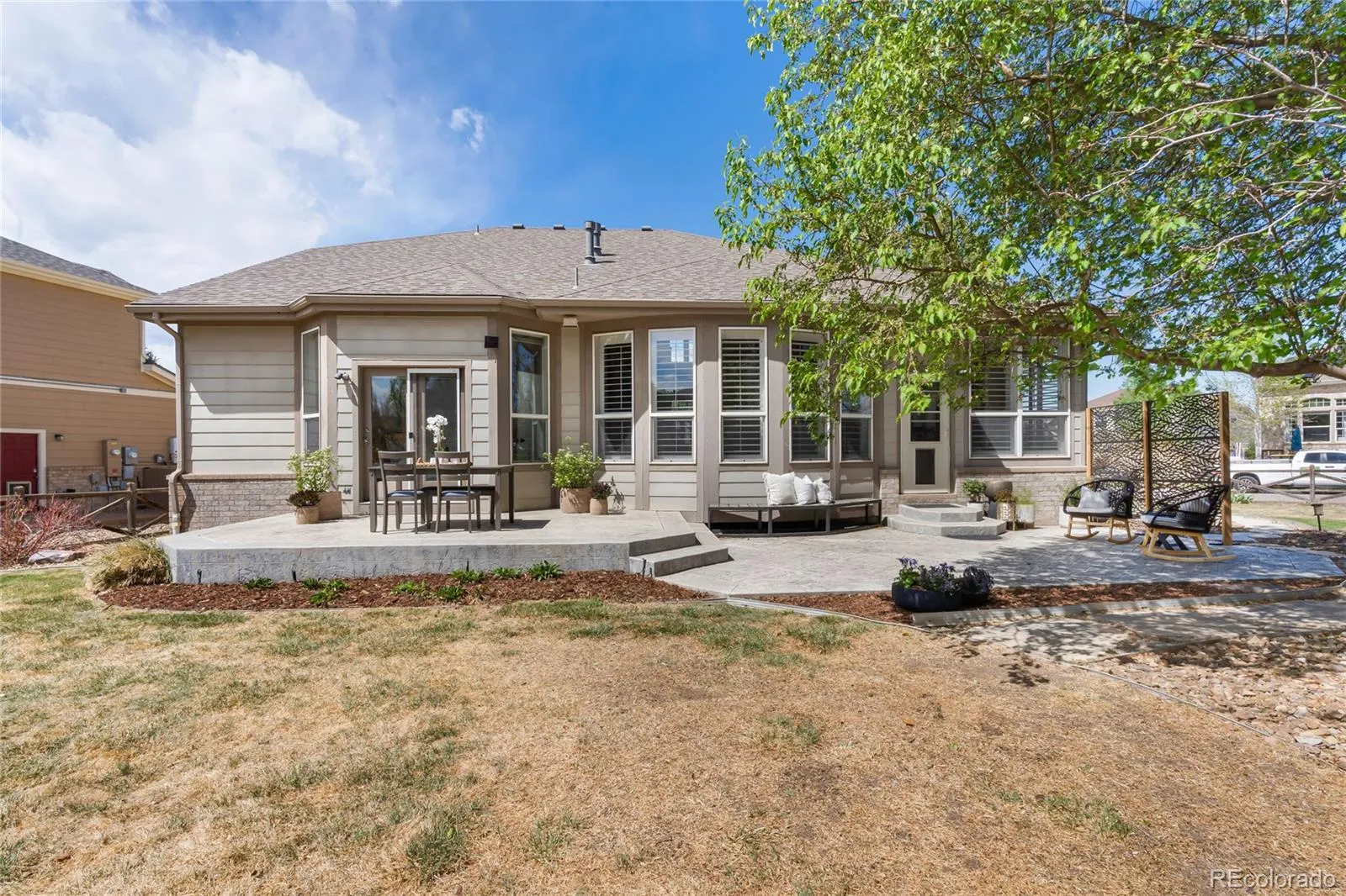 Set on a premium corner lot with golf course views, this beautifully updated home offers privacy, comfort, and effortless main-floor living in the heart of Legacy Ridge. The expansive side yard wraps into a tree-shaded back patio and landscaped backyard—perfect for relaxing or entertaining in a peaceful, scenic setting.