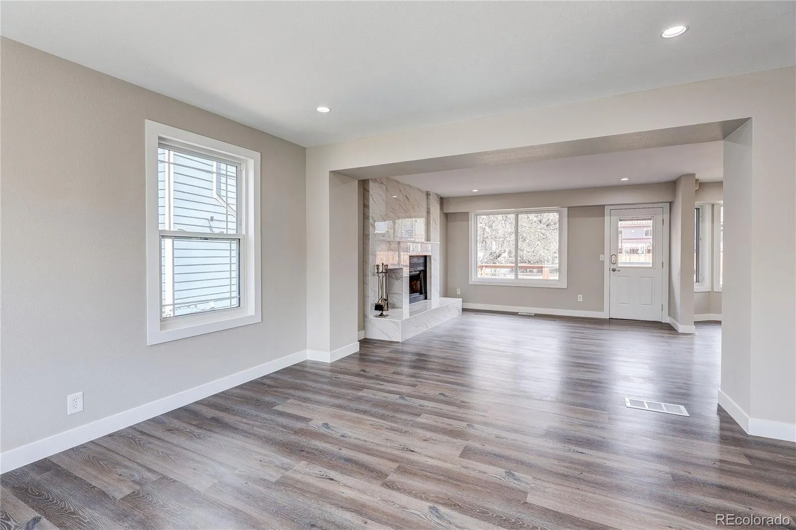 Smile, You’re home! Welcome to this beautifully remodeled home located in central Westminster near shopping, schools and highways! This home is situated on a lovely private lot backing to a greenbelt with mature landscaping. The extensive deck and back patio are perfect for entertaining and summer BBQs. Inside you’ll enjoy an open floor plan with plenty of natural sunlight, fresh paint throughout, stunning luxury vinyl flooring, and a chef’s dream kitchen, complete with 42″ cabinets, quartz countertops, stunning backsplash, under cabinet lighting, stainless steel appliances, and spacious pantry with barn door. Additional main floor features include a beautiful tile fireplace, eat in kitchen with bar top seating, and a separate dining room, or office. Upstairs offers 3 spacious bedrooms, including a primary bedroom/bathroom suite, laundry and additional bath. The finished basement offers additional living space with a huge recreational room, 2 additional bedrooms and bath. The HVAC system has been updated and an on demand hot water system added. This home is a must see, renovated from top to bottom and ready to go!