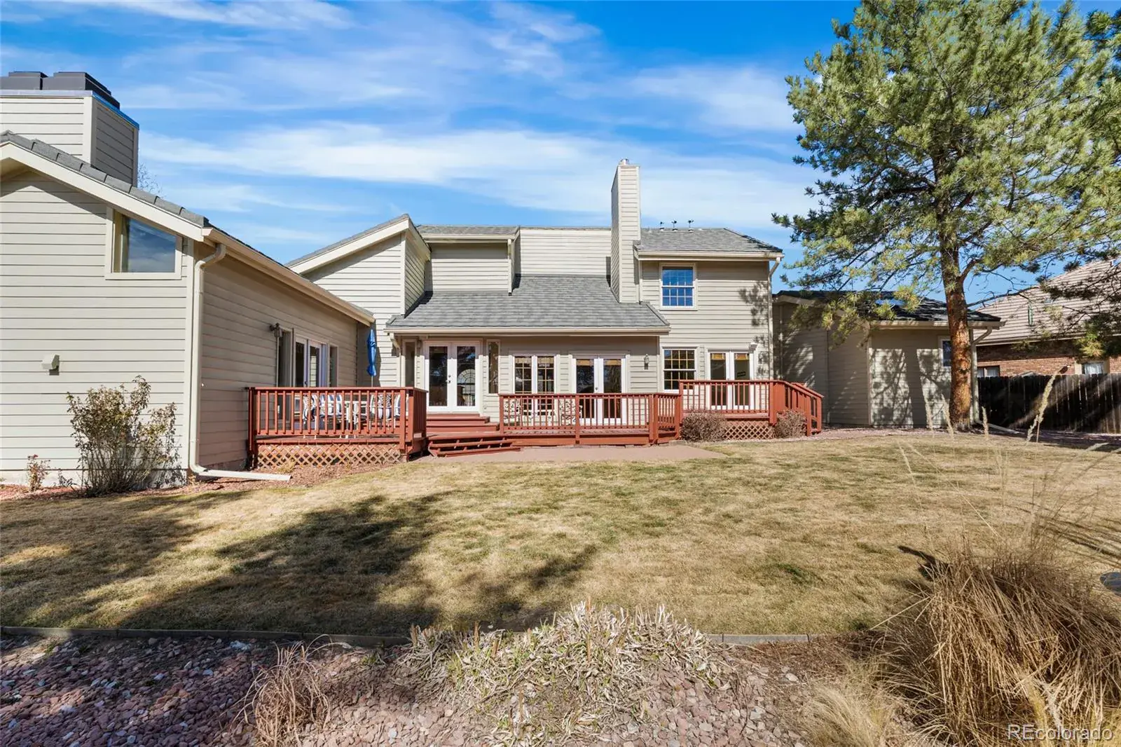 Nestled on an incredible lot in The Ranch, this meticulously maintained and improved home features a remarkable floorplan designed for years of enjoyment. Sweeping vaulted ceilings, an impressive staircase, gleaming hardwood floors, multiple living rooms, four sets of South facing French doors, numerous windows, crown moulding and two fireplaces all flow together, providing an ease of living that’s hard to find. You will love the perfect amount of space in the main-level primary bedroom, which features a five-piece ensuite with a jetted tub, large skylight, walk-in closet and rear deck access! The laundry room is also on the main level. Retreat upstairs to find a second primary bedroom with a spacious ensuite bathroom, a third bedroom, and another beautifully remodeled bathroom! Relish the unfinished basement, which you can expand into if you wish, currently hosting a tucked away workshop for hobbyists. Step outdoors to the freshly stained sprawling deck, impeccable mature landscaping with a fountain, outdoor speakers, separate patio spaces, a privacy fence and even additional parking with double gate access! If desired, The Ranch Country Club is a private club offering magnificent lifestyle opportunities for separate membership. This rare property is the full package and ready to be made your home, it’s been meticulously cared for including a 1 year old furnace and the steel roof (2019) has a transferable warranty!