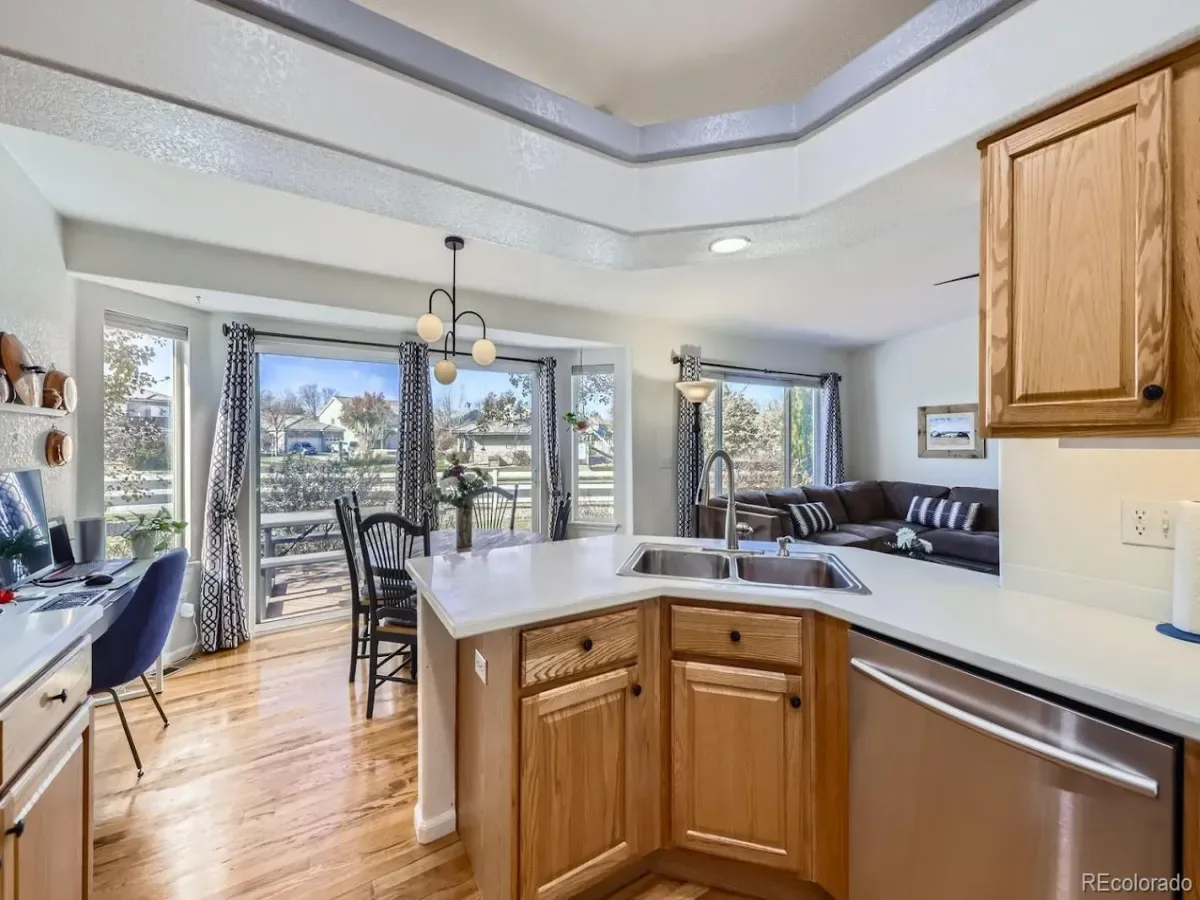 Enjoy effortless main-floor living with an open floor plan and vaulted ceilings that create a bright and airy atmosphere. The expansive living room seamlessly flows into the dining area, family room, and a sunlit kitchen. The kitchen offers a cozy breakfast nook, immaculate maintenance, and all stainless-steel appliances, making it the perfect space for both everyday meals and entertaining guests.