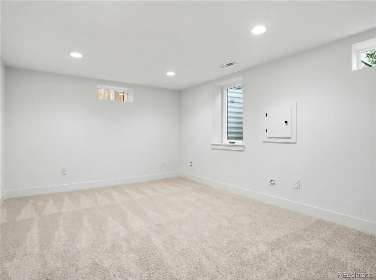 Downstairs, the finished basement expands the home with a large rec room, three additional bedrooms, a full bathroom with double vanity, a dedicated laundry room, and plenty of storage space.