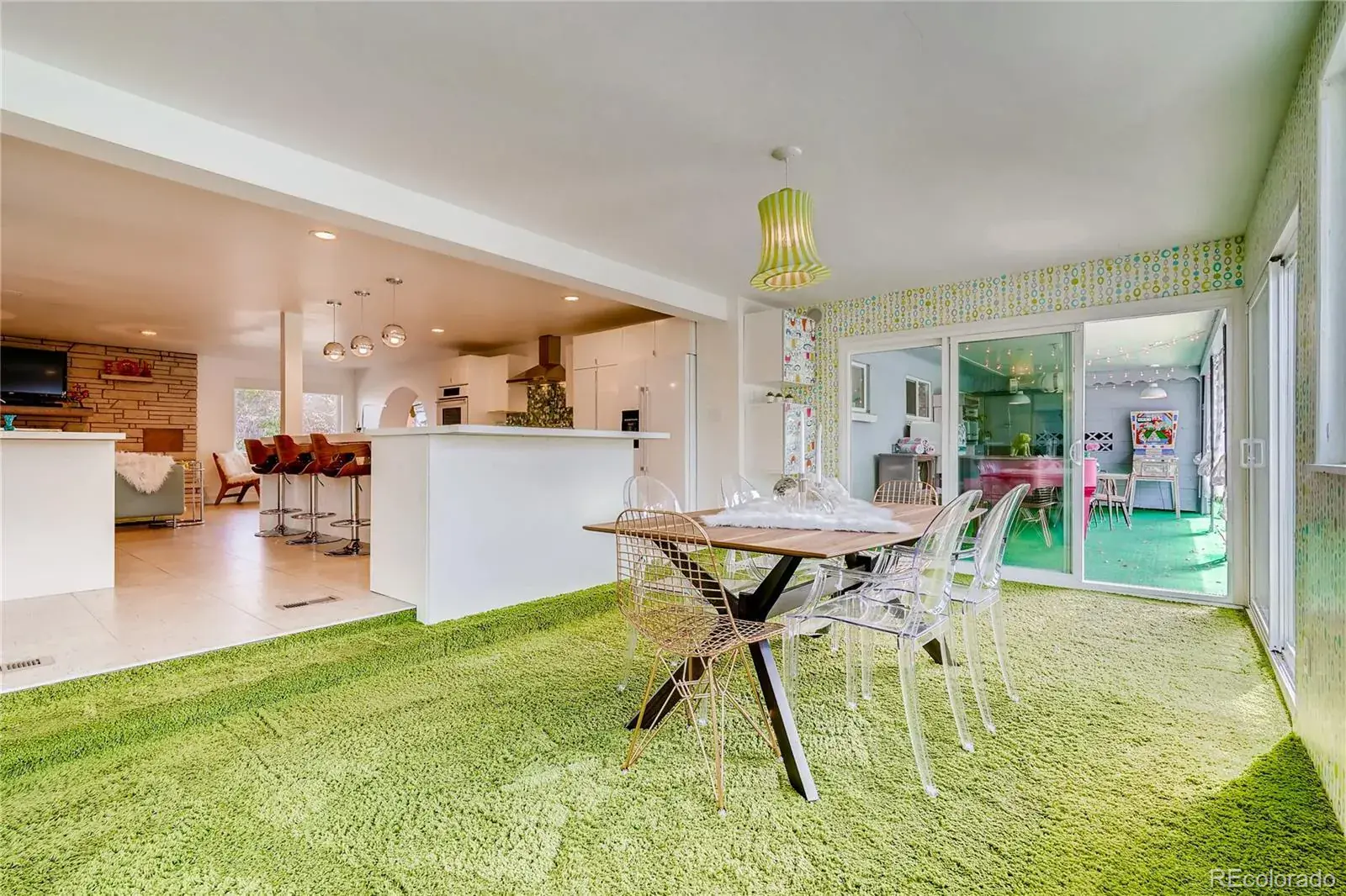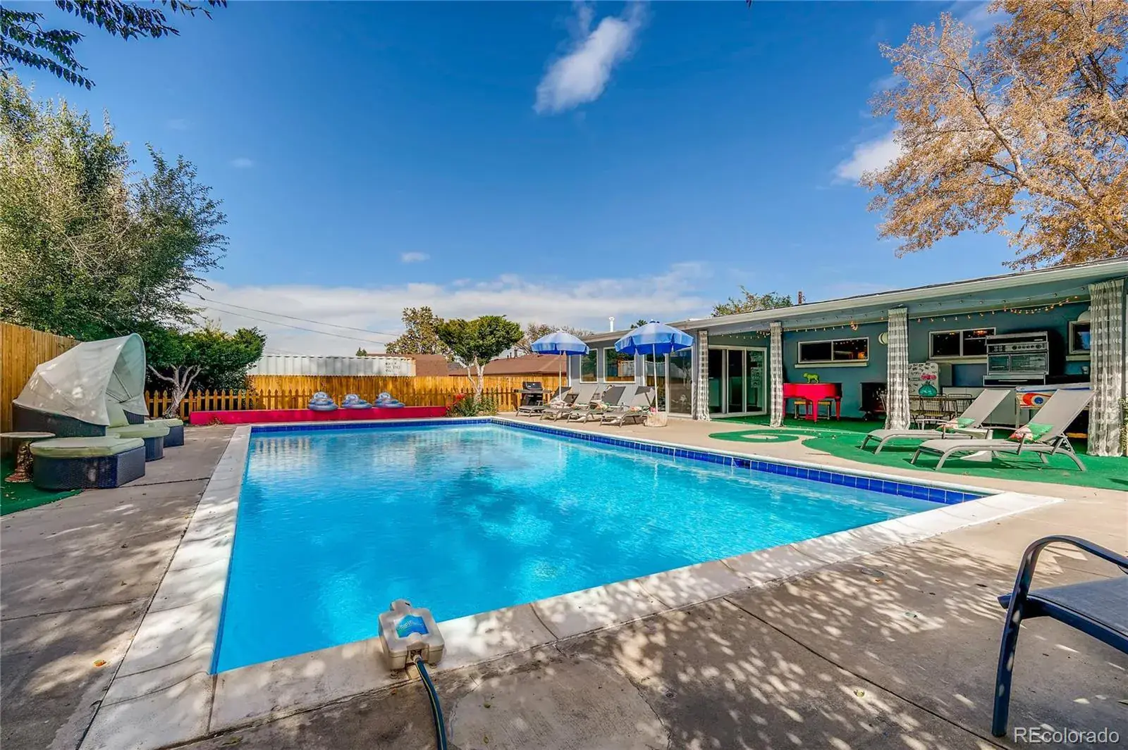 Denver meets Palm Springs in this truly one of a kind Mid-Century Modern home. Owned by famed mural artist Pat Milbery, the home includes an original mural and multiple one of a kind works of art. An extremely private oasis in the city, your entertainer’s paradise boasts open floor plan, custom design, and in-ground saltwater swimming pool. The interior has been carefully restored to showcase the original beauty of the home. Features include wood burning fireplace, steam shower, salt water swimming pool, low maintenance exterior, entire house wired for sound indoor/outdoor, and more. Mixed use zoning provides endless options for event center, live/work space, social club, day spa. Host private events or generate income on Swimply and Airbnb. Walk to restaurants and shops on 38th ave, Randall Park, Lakeside amusement park, and 44th ave shopping center. Tennyson st and the Highlands just minutes away. Close to I-70 and easy jumping off point to the mountains. ***Pool has not been used for a few years. Pictures of pool are not current. Pool will require some repair and house is priced accordingly