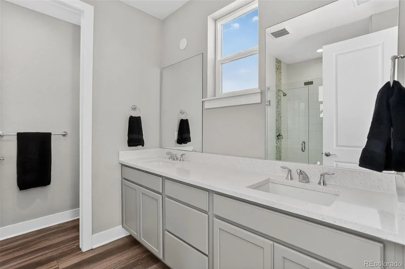 Upstairs, the primary suite feels like a private retreat with a spa-inspired bath, dual sinks, and a beautifully tiled shower. A second upstairs bedroom offers its own ensuite bath and walk-in closet, while laundry is conveniently located upstairs for everyday ease.
